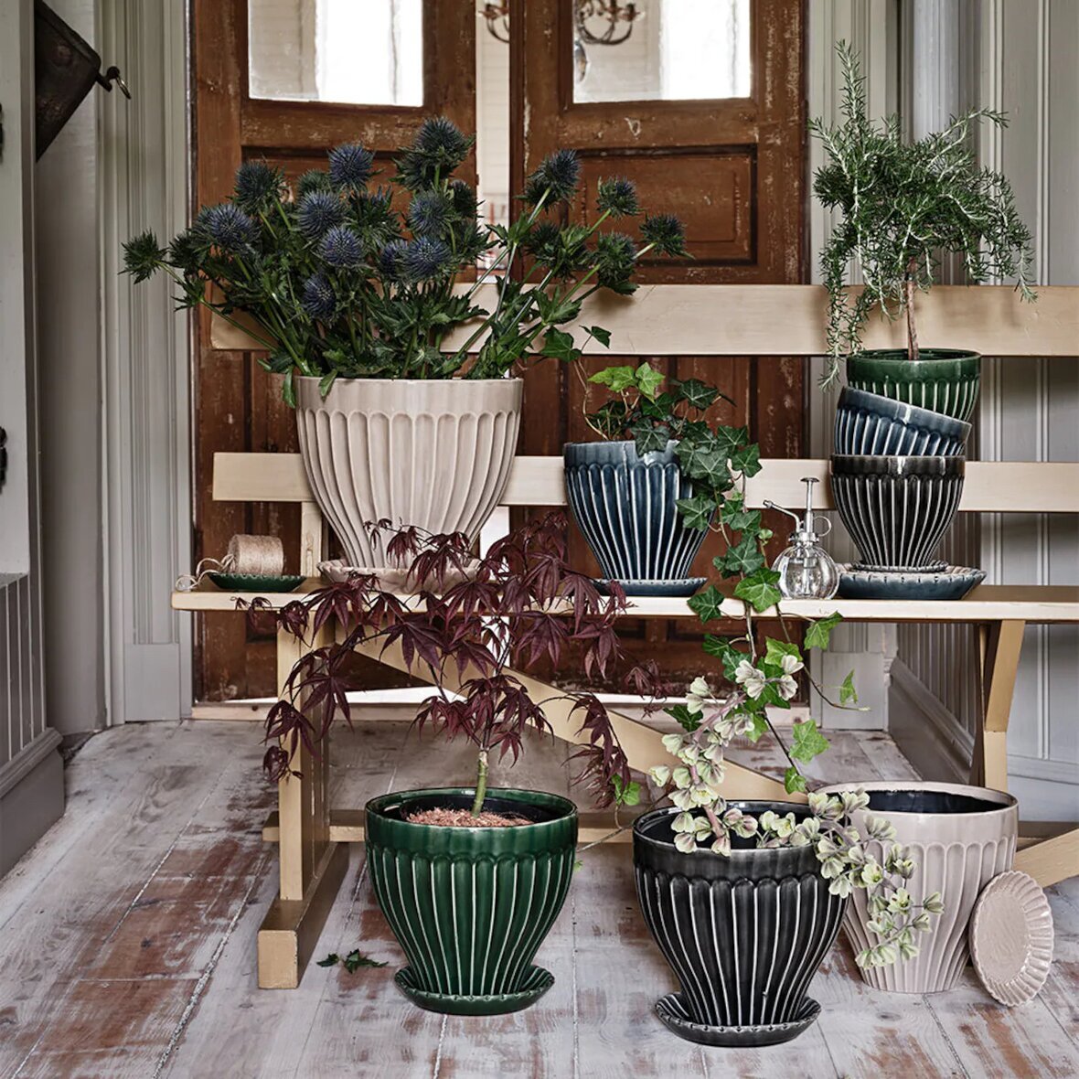Vacker kruka inkl fat tillverkad i stengods, finns i ett flertal olika storlekar & färger. Från Strömshaga. Läs mer