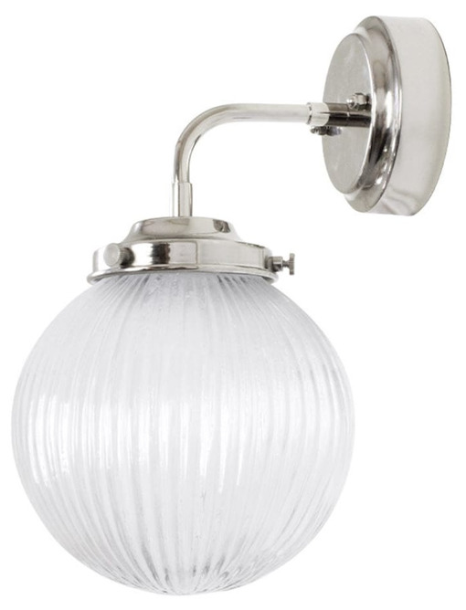 Uppgradera ditt badrum eller uterum med den eleganta vägglampan Eivor. Med sitt väggfäste i nickelfinish och den räfflade glaskupan förmedlar Eivor en tidlös stil med inspiration från sekelskiftet. Den skapar ett mjukt och behagligt ljusspel som bidrar till en inbjudande och varm atmosfär.