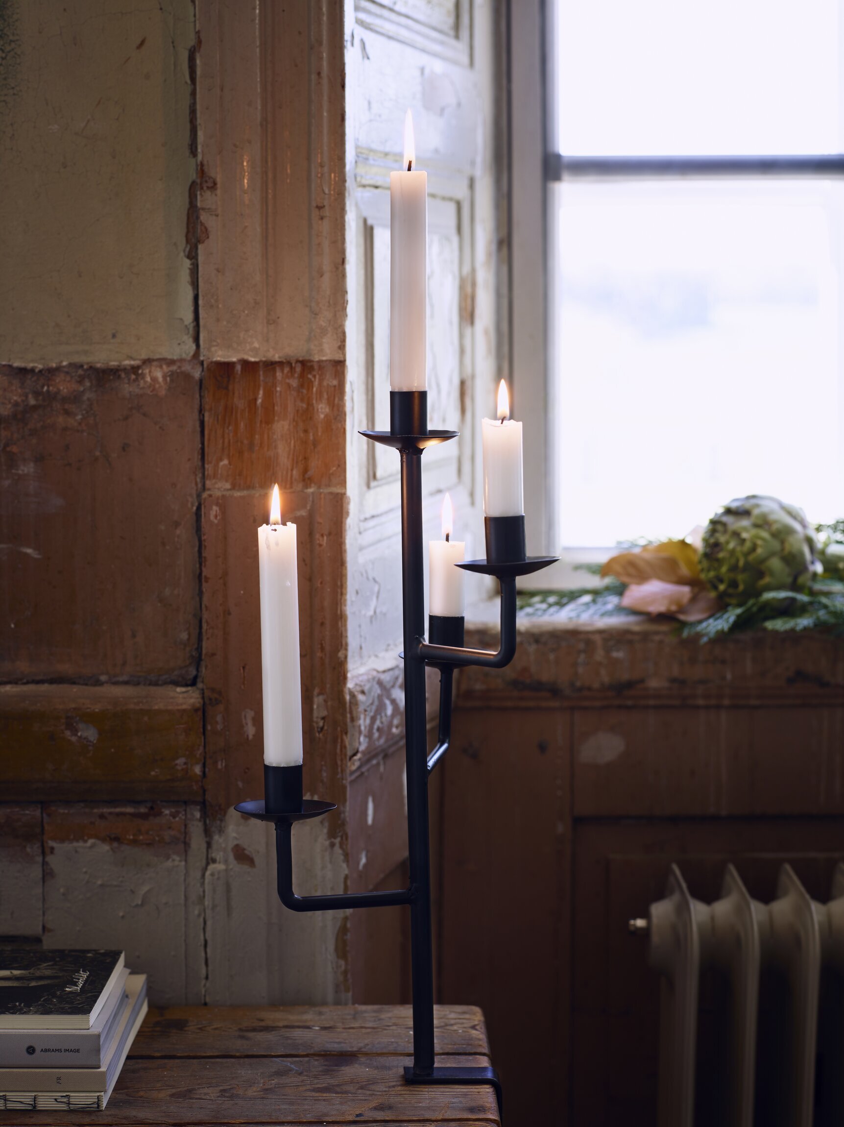 Vacker ljusstake i svart metall med plats för 4 stycken ljus, skruvas fast i en bordsyta, hylla eller fönsterbräde. Läs mer