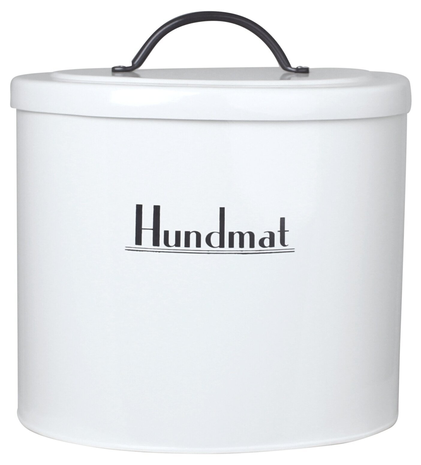 Rejäl & rymlig plåtburk med lock till hundens torrfoder, finns även plåtburk hundgodis i samma serie, från Strömshaga.
