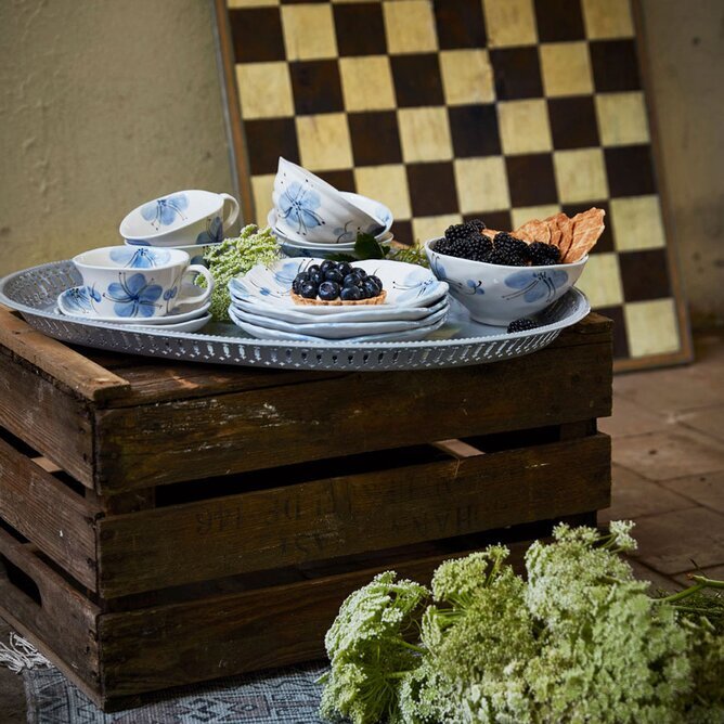 Vacker tallrik/assiette i porslin med romantiskt och gammaldags mönster utav blå blommor. Matcha gärna med tillhörande kopp och skålar som finns i samma serie/mönster. Läs mer