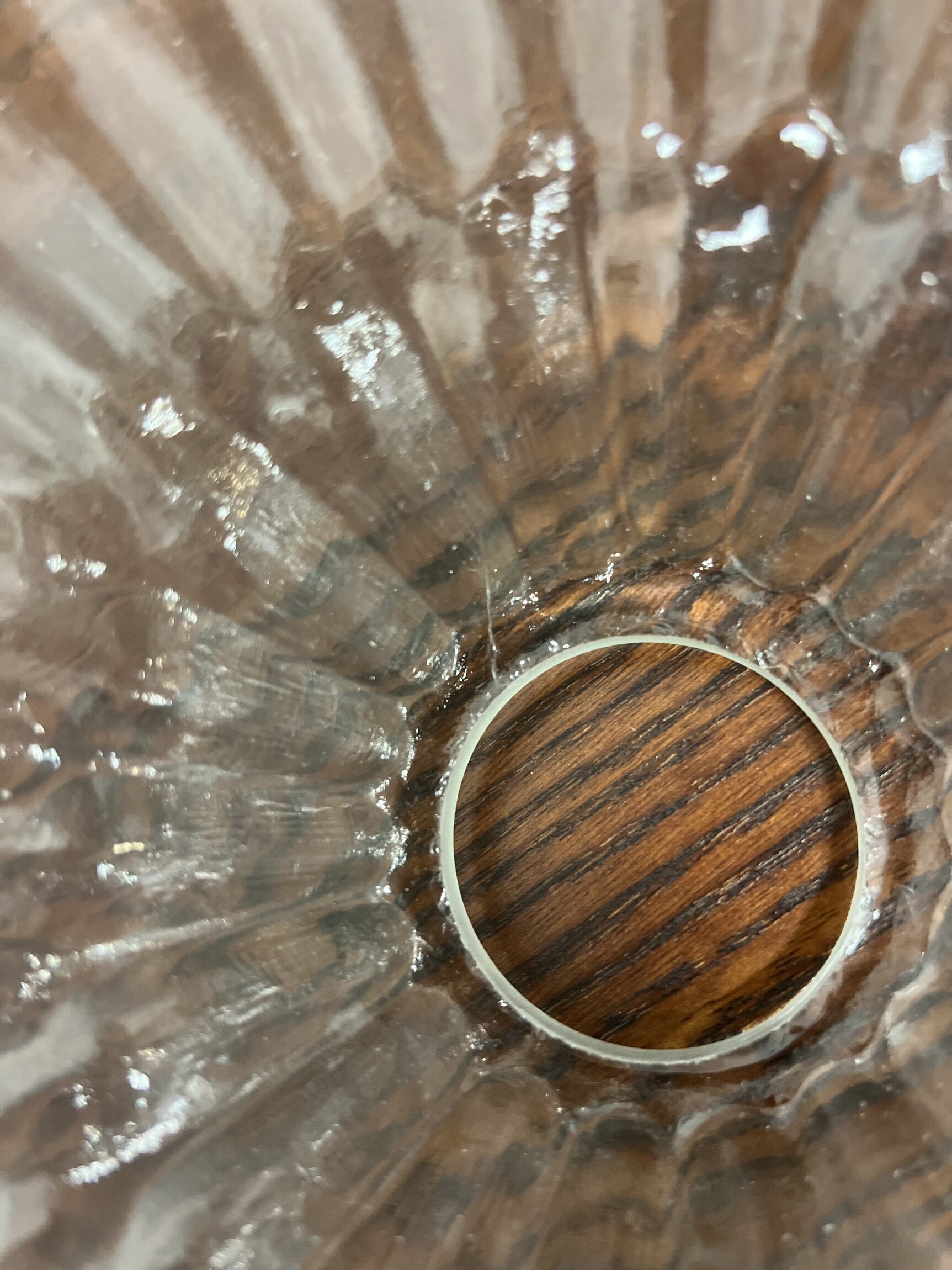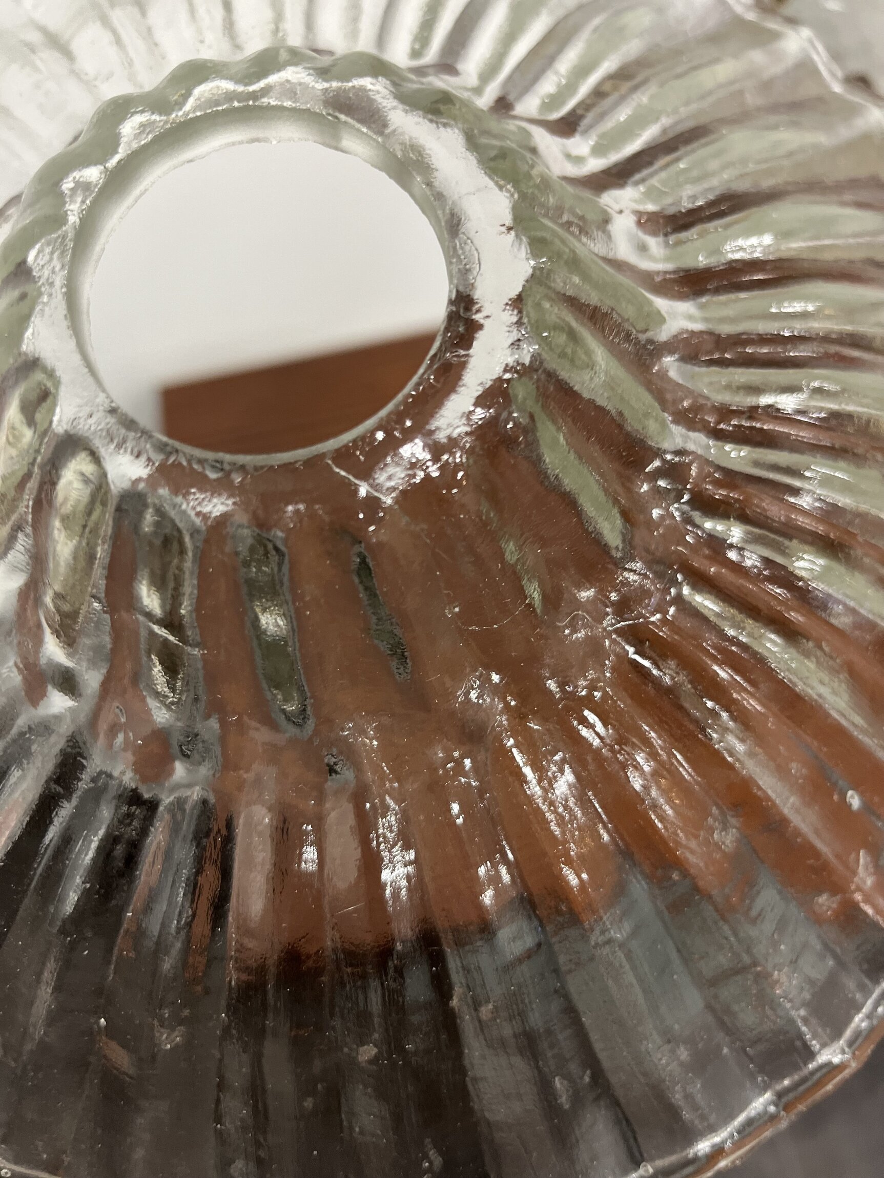 Knappt synbara naggar på lampskärmens glaskant, finns även en repa på glasets insida (upptill vid fästet) ej spricka i glaset.