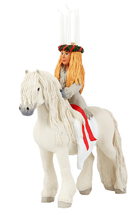 Vacker figurin föreställande en ridande Lucia. Design: Erkers Marie. Läs mer