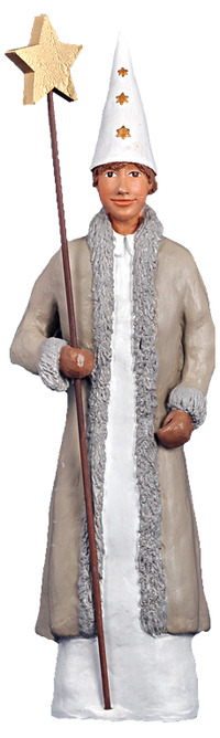 Figurin, Stjärngosse Stefan, finns även med tärnor, tomtenisse & Lucia fina att samla till luciatåg som vacker juldekoration. Figurinerna är gjutna i marmorsand samt handmålade. Design: Erkers Marie.