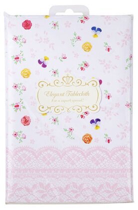 Över hela ytan av förpackningen sprids små, blommiga mönster i olika färger, inklusive rosa, gult och lila. Blommorna är arrangerade i ett lekfullt mönster som ger en känsla av vår och sommar. Detta blomstrande tema för med sig en fräsch och livfull atmosfär som kan förväntas av en bordsduk för sociala sammankomster. Dessa detaljerade blomdekorationer signalerar en lättsam och inbjudande estetik.