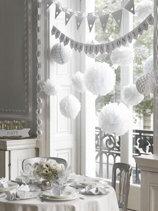 Med dessa Honeycombs som vecklas upp & sätts ihop med ett gem & medföljande sidenband för upphängning kan du göra vilket rum som helst klart för kalas eller fest. Perfekt att använda till bröllop och andra stora festligheter eller varför inte dekorera med dessa till barnkalaset eller ute i trädgården. Förpackningen innehåller 3 stycken vita Honeycombs i olika storlekar.