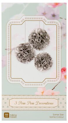 Med dessa pompoms som vecklas upp & binds ihop med medföljande sidenband för upphängning kan du göra vilket rum som helst klart för kalas eller fest. Perfekt att använda till bröllop och andra stora festligheter eller varför inte dekorera med dessa till barnkalaset eller ute i trädgården. Förpackningen innehåller 3 stycken pompoms i färgen silver. Medföljer instruktioner för ihopbindning.