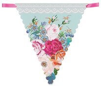 Detta vimpelspel/flaggspel har 16 st vimplar med 7 olika blommönster. Den totala längden är 4 meter och vimplarna sitter på rosa satinband. Häng detta vimpelspel på kalaset, festen, barnrummet eller i trädgården. Varje vimpel är B 16 x H 18 cm och har tryck på båda sidor. Vimpeln är gjord i papper.