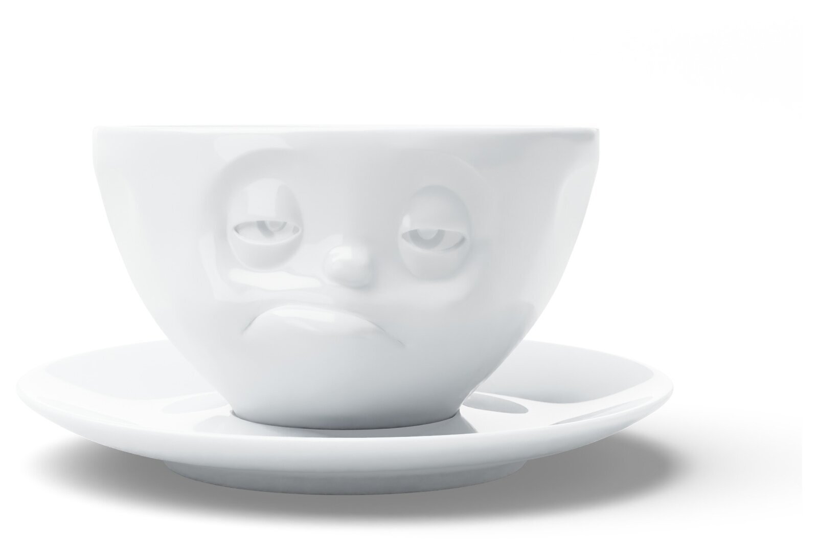 Elegant kopp med handtag och tillhörande fat – perfekt för en rejäl kopp kaffe, te eller varm choklad. Läs mer
