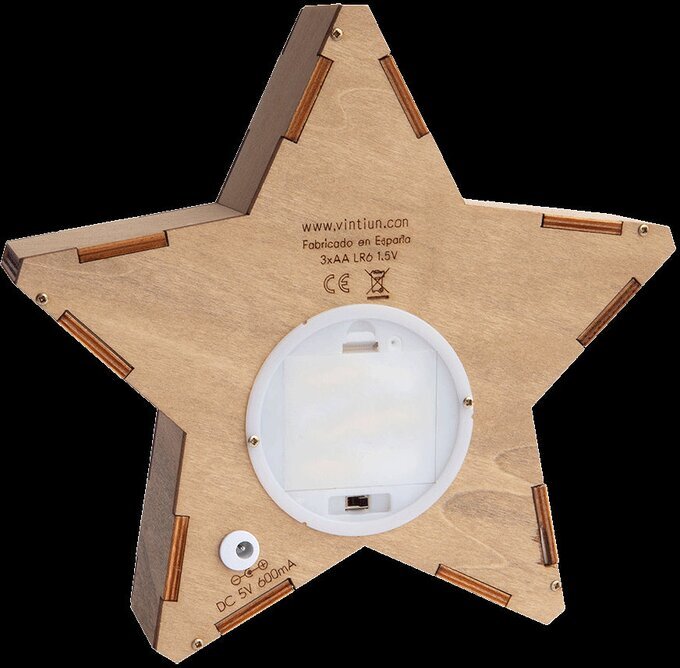 Stjärnan drivs av 3 stycken AA-batterier (medföljer ej). Adapter kan användas men medföljer ej utan köps separat. CE-märkt.