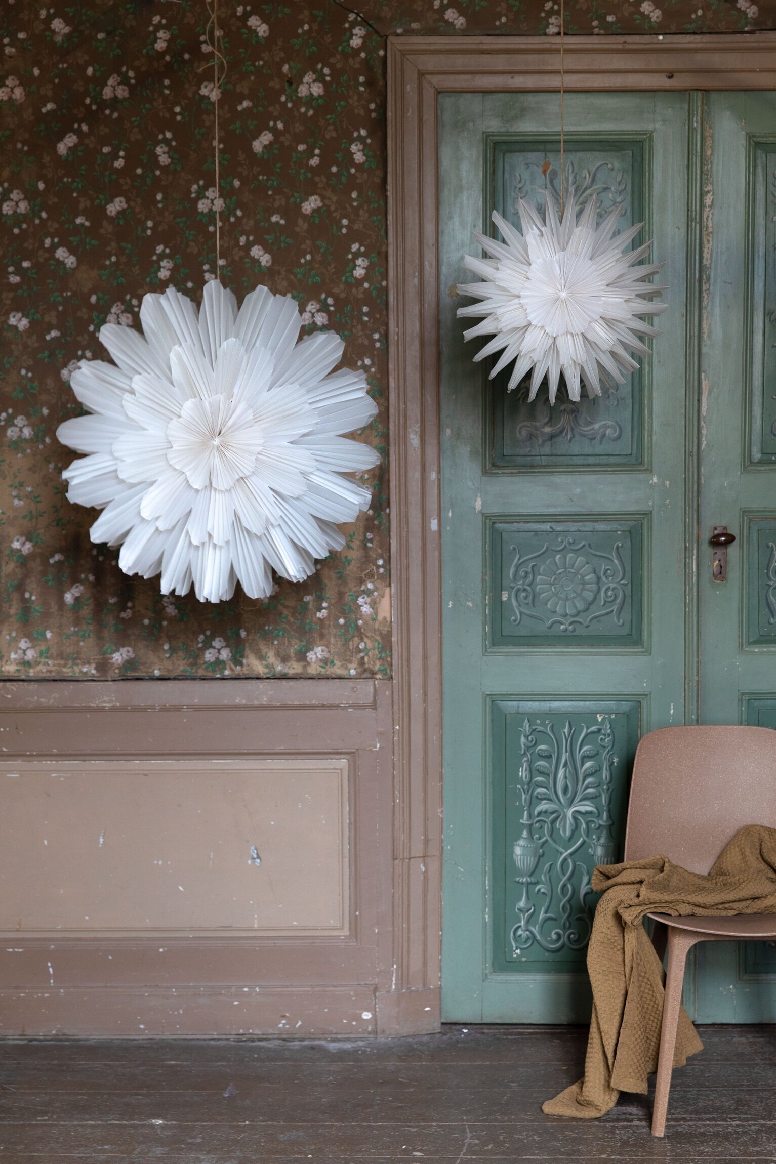 Vacker julstjärna som är vikt i tre lager av halvtransparent papper vilket ger den ett flerdimensionellt utseende. Levereras i en vit elegant förvaringsbox så julstjärnan håller sig fin år efter år. Sladd med strömbrytare köps separat.
