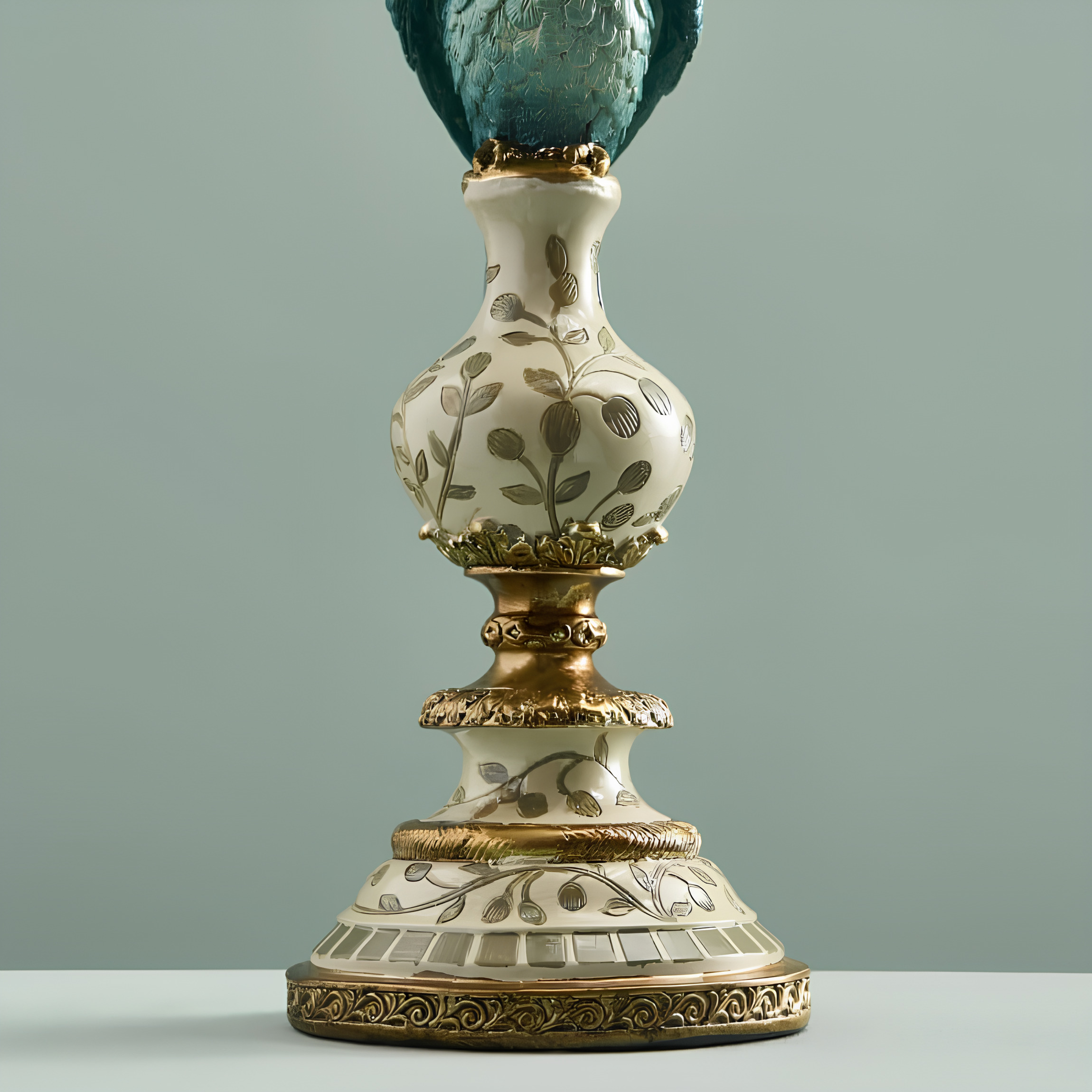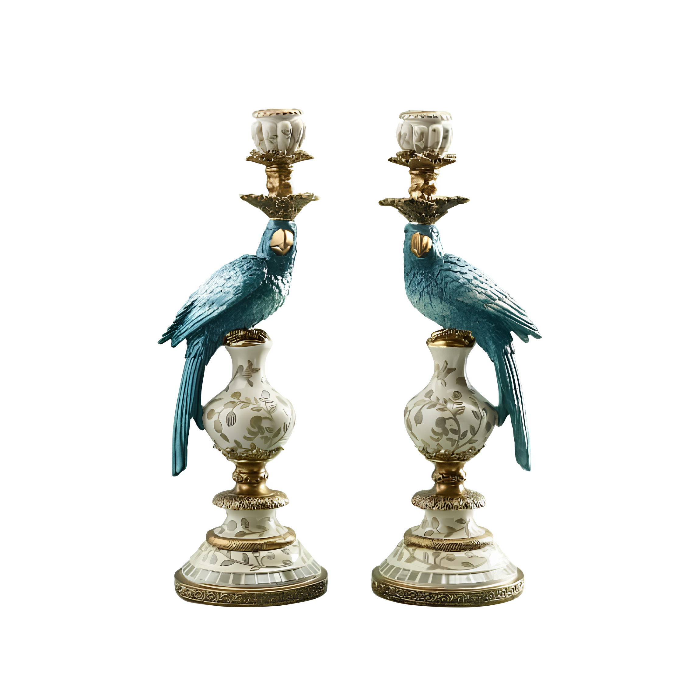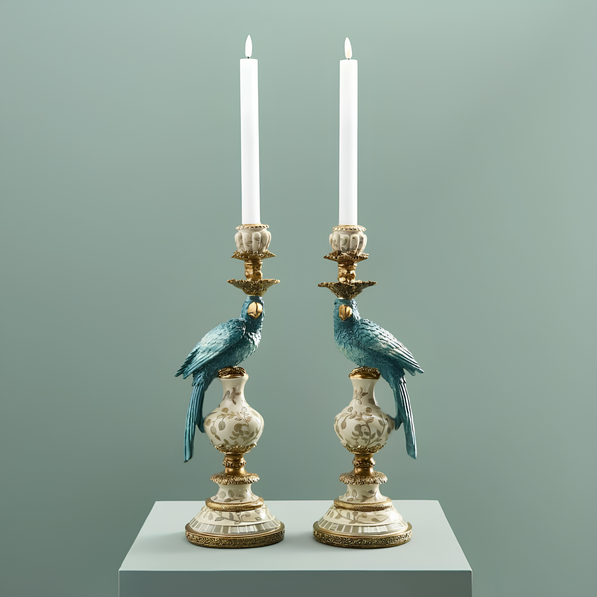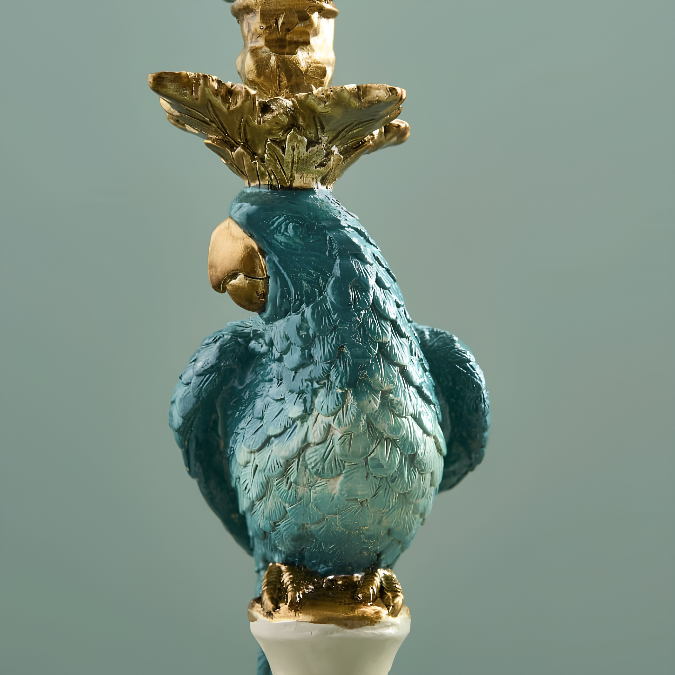 Den här ljusstaken är allt annat än diskret – och det är precis det som gör den så fantastisk. Med sin blå papegoja, porslinsinspirerade detaljer och guldfärgade inslag blir den en riktig statement-dekoration som drar blickarna till sig direkt.