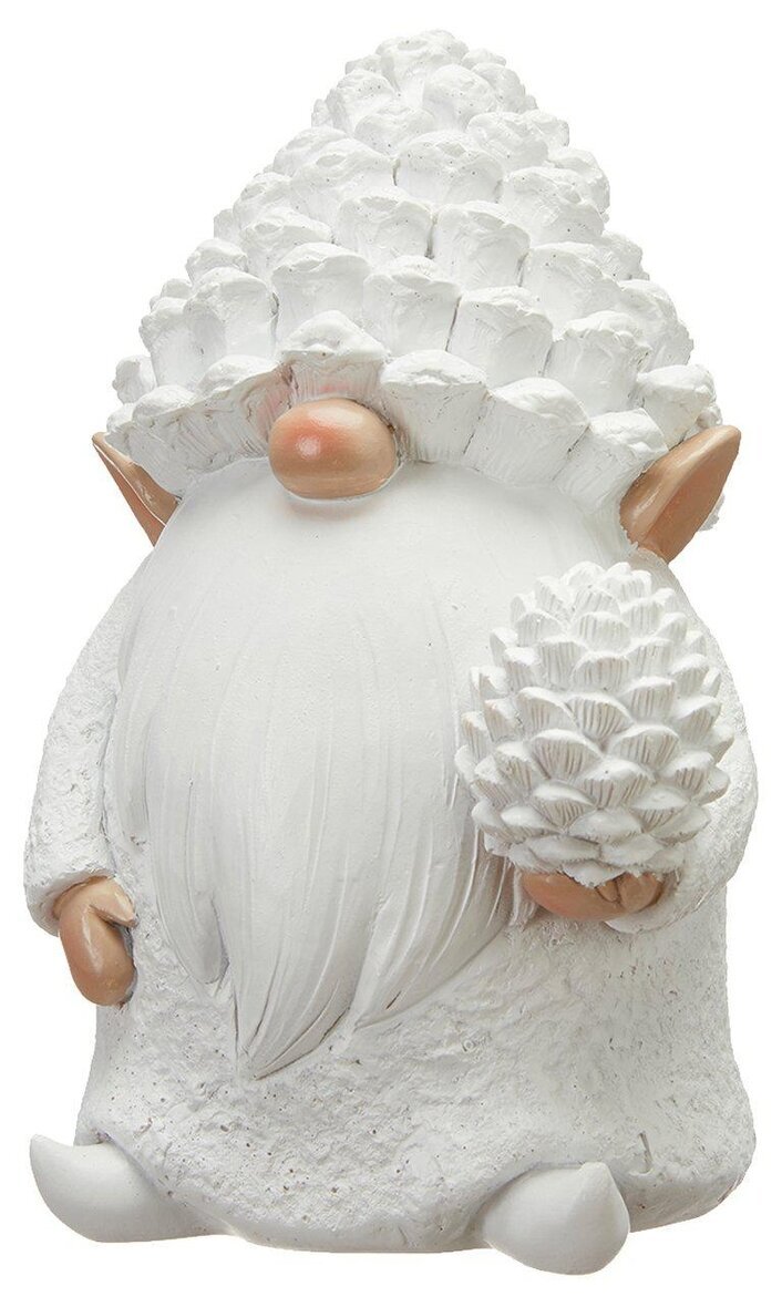 Liten vätte med kotte som hatt, en dekorativ inredningsdetalj i en fin vit nyans. Från Wikholm Form.