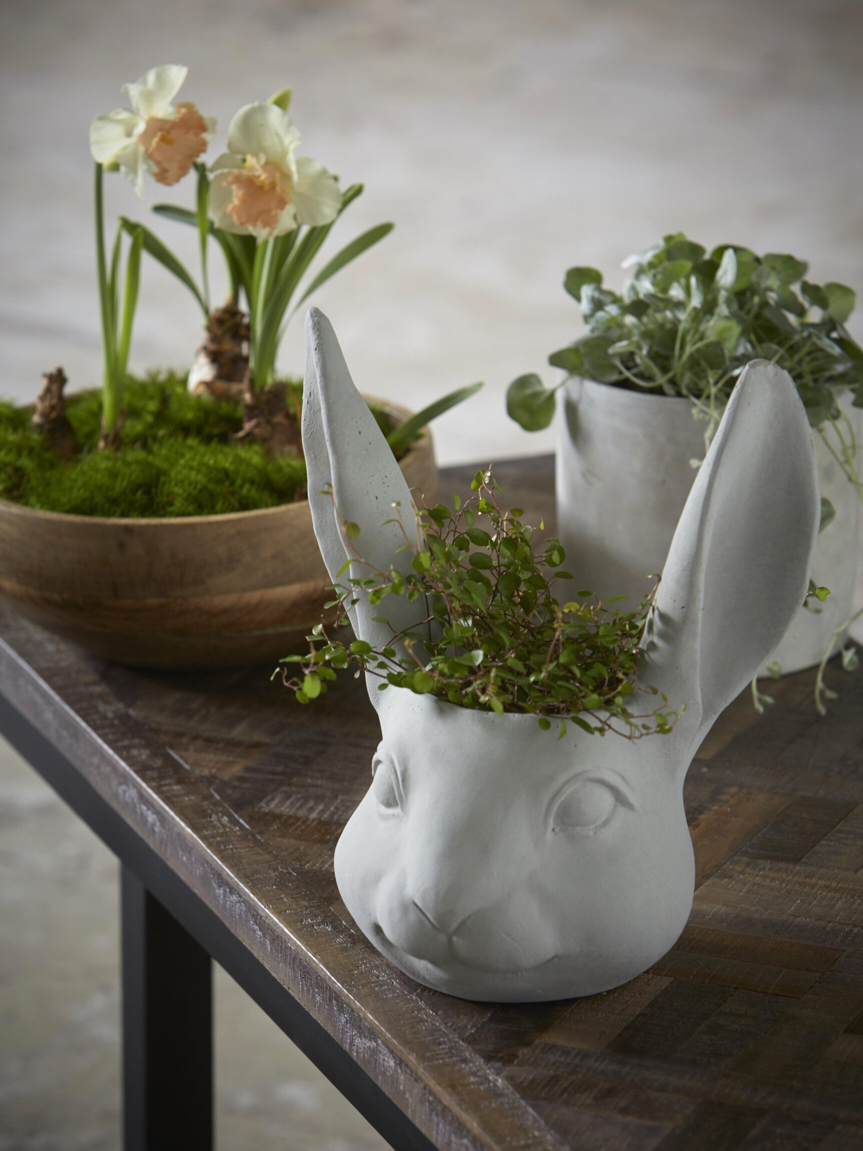 Vacker liten kruka i form av en kanin med plats för en grön växt eller till förvaring av påskgodis.