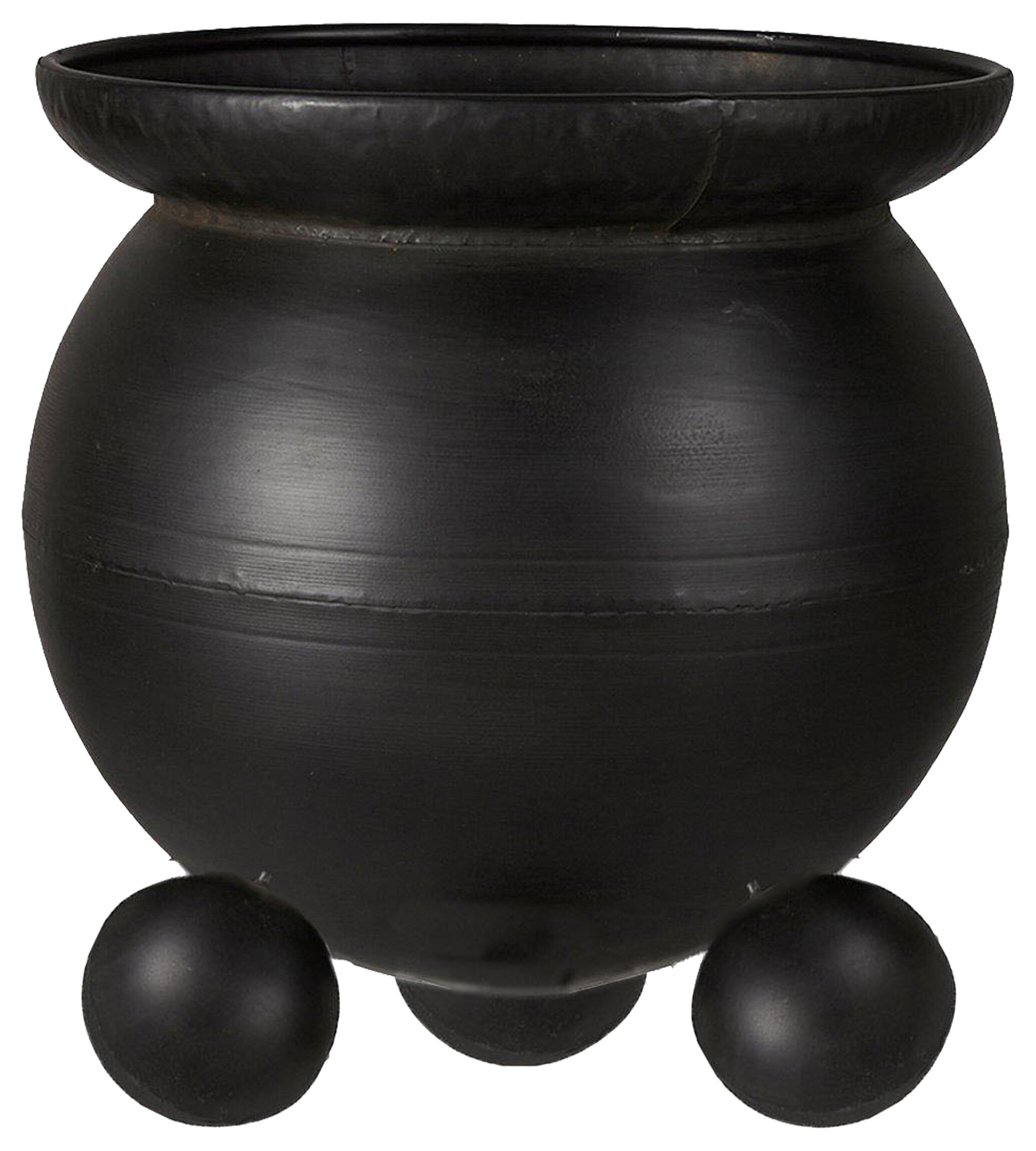 Nedanför själva behållaren finns tre kulformade ben som krukan vilar på. Dessa ben ger hela föremålet en något upphöjd position, vilket bidrar till en känsla av stabilitet, och kanske även en påminnelse om klassiska designinslag. Denna funktionella utformning kan ha en praktisk aspekt genom att underlätta rengöring eller eventuell förflyttning.