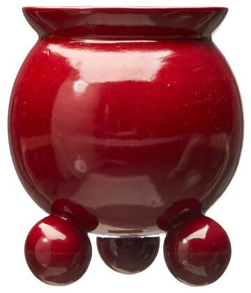 Vacker kruka med kulfötter i en blank röd nyans, fin till julens blomsterarrangemang. Det kan förekomma håligheter samt färgskillnader i lackeringen av krukan.