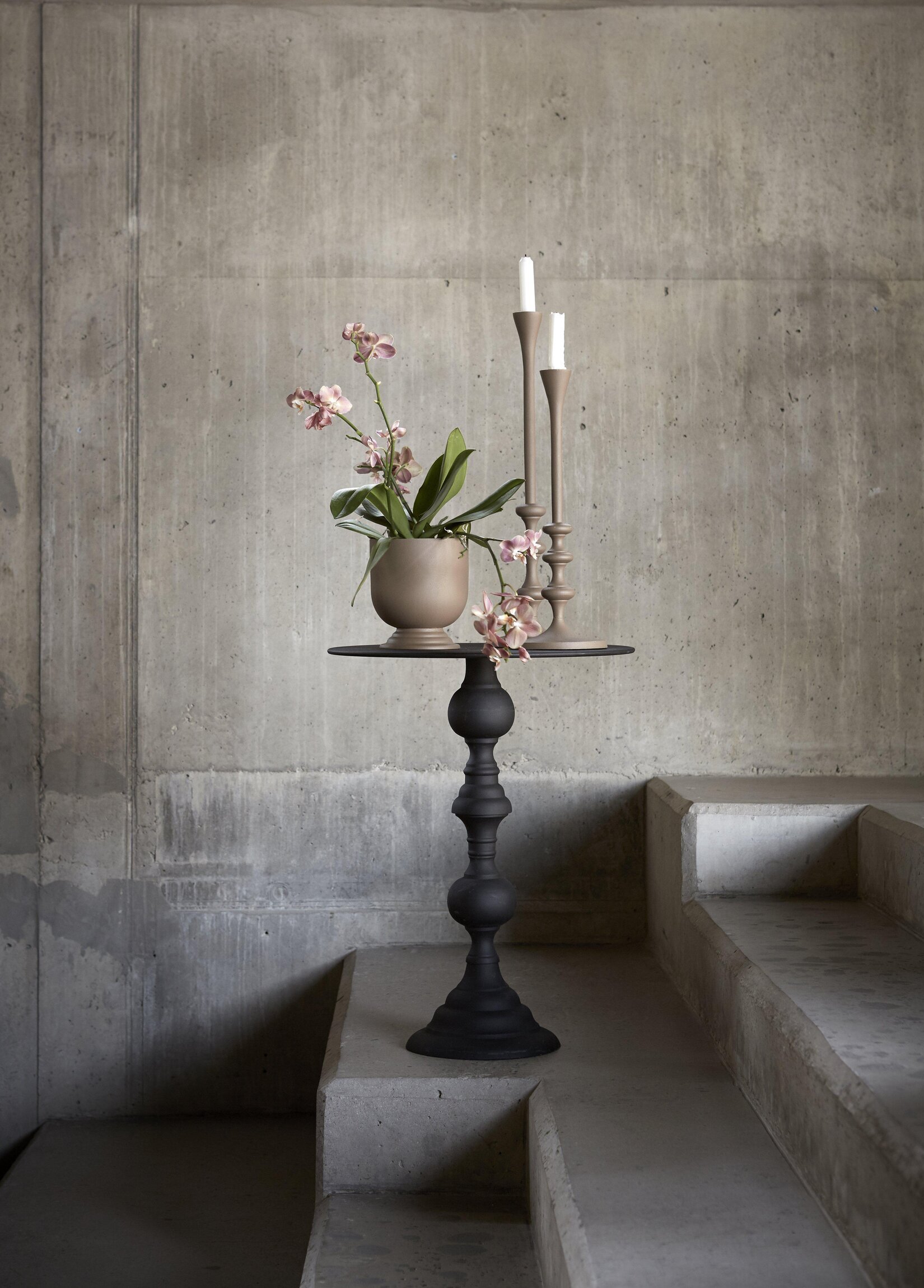 Vackert pelarbord tillverkat i aluminium, en fin detalj & praktisk som litet avlastningsbord. Från Wikholm Form.