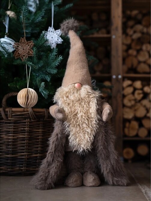 Charmig tomte som blir den perfekta dekorationen för att skapa en mysig julstämning i ditt hem. Med sin fluffiga skägg och mjuka, bruna kläder sprider den en varm och välkomnande känsla. Tomtens stilrena design passar perfekt i alla typer av juldekorationer och blir snabbt en favorit som gärna får ta plats år efter år. Låt den stå som ett blickfång i hallen eller vid granen och skapa en härlig julkänsla med en twist av traditionell charm.