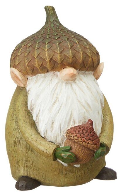 Liten vätte med ekollon som hatt, en fin juldekoration med vackra jordnära färger.
