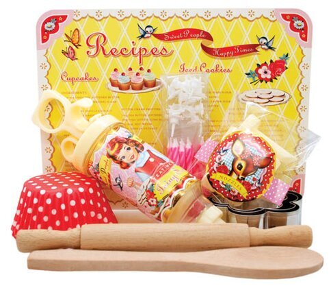 Dekorativ plåtburk innehållande allt som behövs till bakningen. Innehåller träslev, kavel, muffinsformar, kakformar, receptkort, ljus med ljushållare och kristyrset. Läs mer