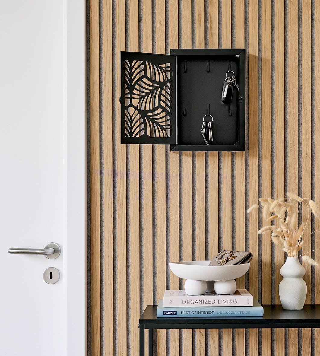 Skåpet är lätt att placera i hallen och blir en snygg detalj på väggen samtidigt som du alltid har nycklarna på samma ställe. En smart lösning som gör vardagen lite enklare – och hemmet lite finare.